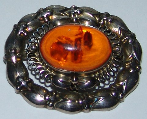 Georg Jensen Sterling Silver Brooch with Ambor No 109