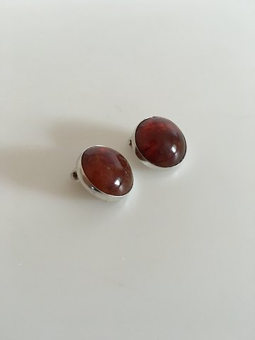 N.E From Øreklip i Sterling Sølv med Rav. Måler 1,2cm, vejer 5,8g og er i god stand.