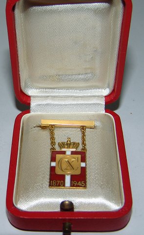 Georg Jensen 14K guld Kongemærke med Box fra 1945.