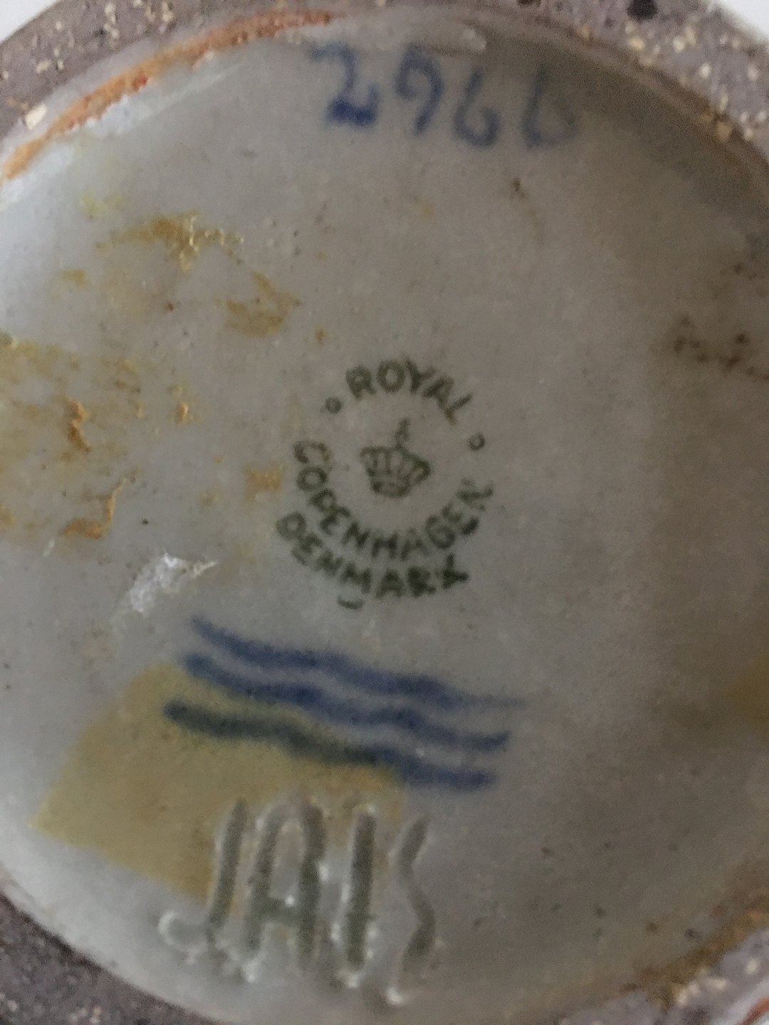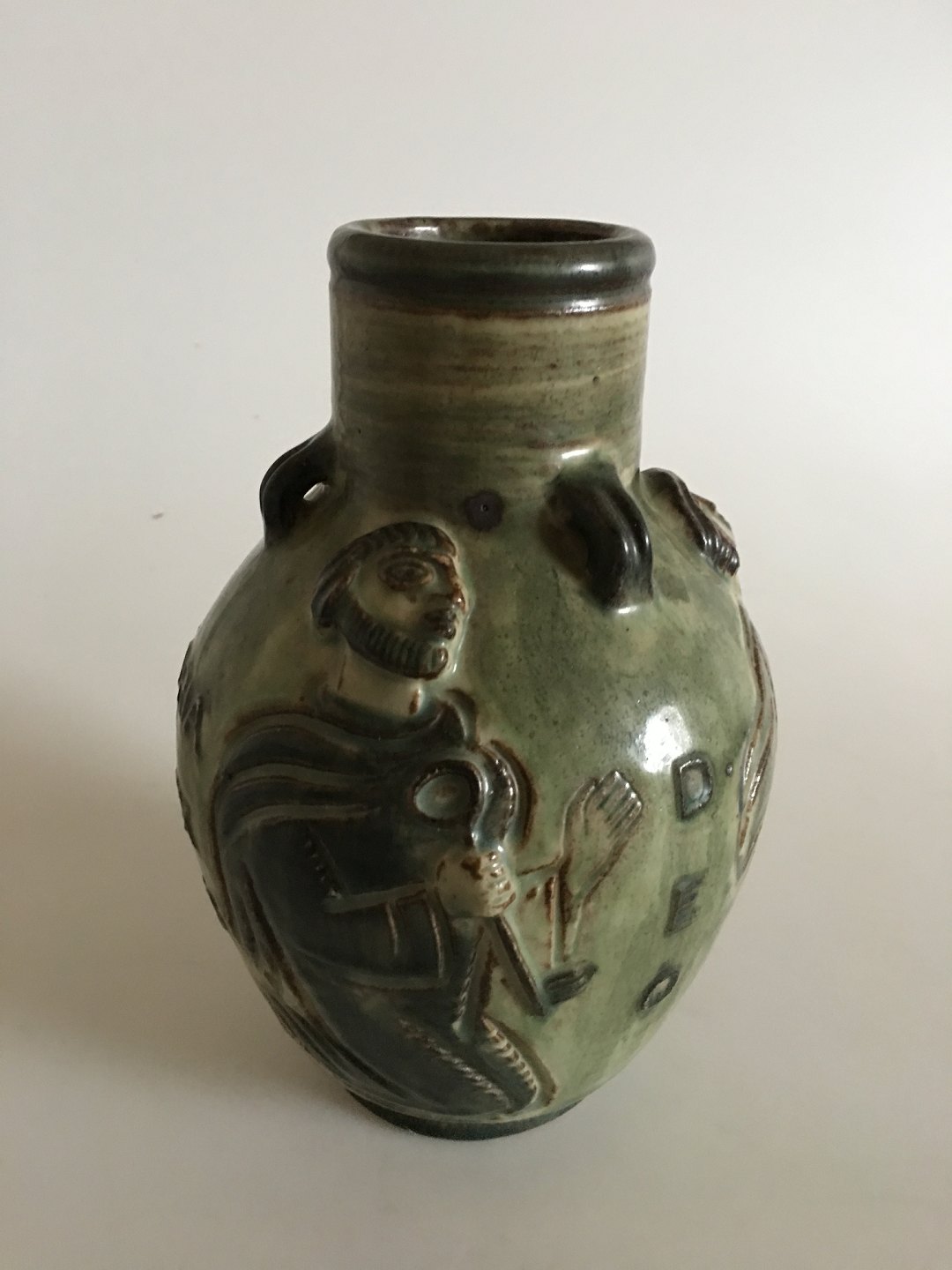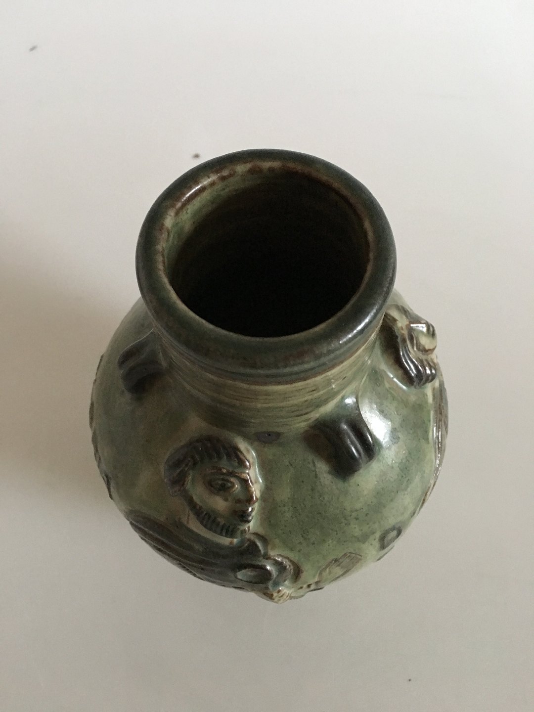 Royal Copenhagen Jais Nielsen Stentøjsvase No 2966 i speciel grøn glasur. Måler 21cm og er i god stand.