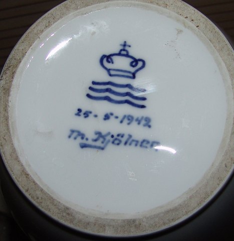 Royal Copenhagen Unique Vase by Theodor Kjølner from 1942 with ship. Measures 33,5cm and is in good condition.