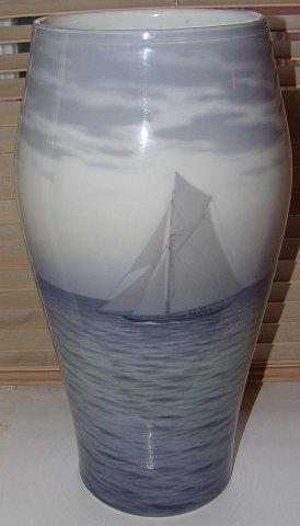 Royal Copenhagen Unique Vase by Stephan Ussing with Ships. Measures 36cfm and is in good condition.