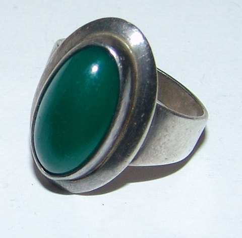 N.E. From Sterling Sølv Ring med Grøn Sten. Måler 1,8cm og er i god stand.