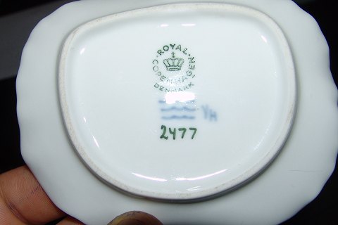 Royal Copenhagen Skål Frø på åkandeblad No 2477. Måler 10cm x 3cm. Designet af Erik Nielsen.