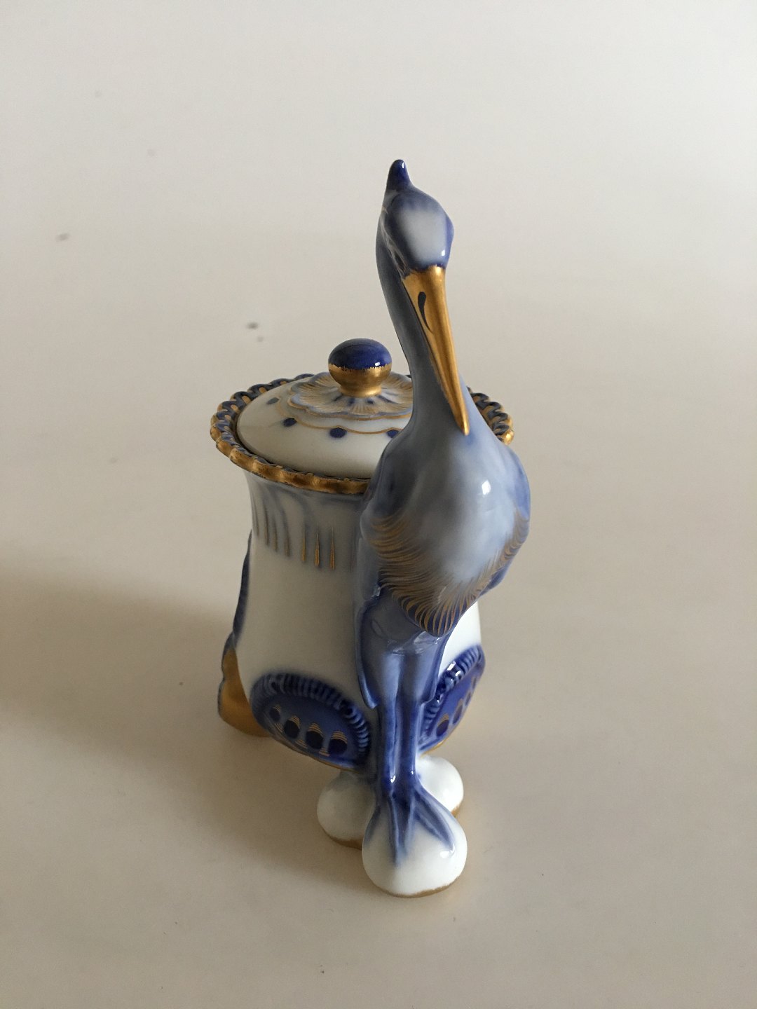 Bing & Grondahl Heron Pattern Mustard Jars with lid. Measures 12,5cm and is in good condition. From 1902-1915