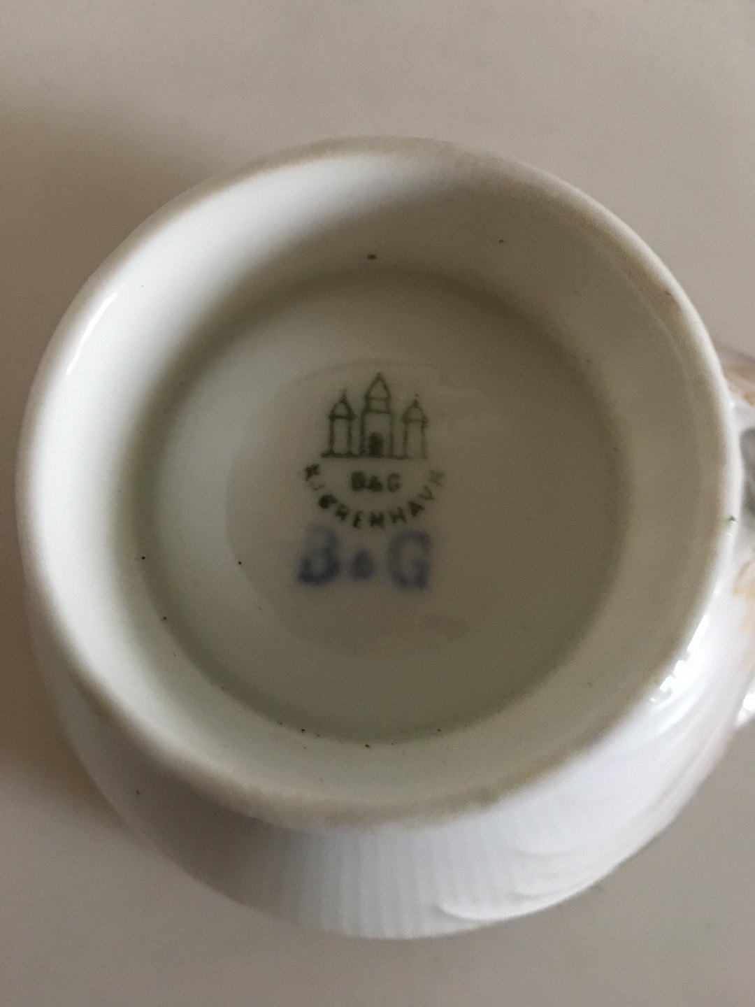 Bing & Grøndahl Hejre Stel The Kop med guld. Måler 7,5cm høj og 10cm dia. Dateret til 1902-1915.