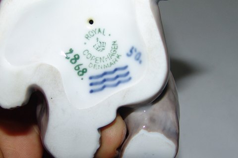 Royal Copenhagen Figur Faun/Pan med børneunge No 2868. Måler 11cm x 9cm og i perfekt stand. 1st sortering.