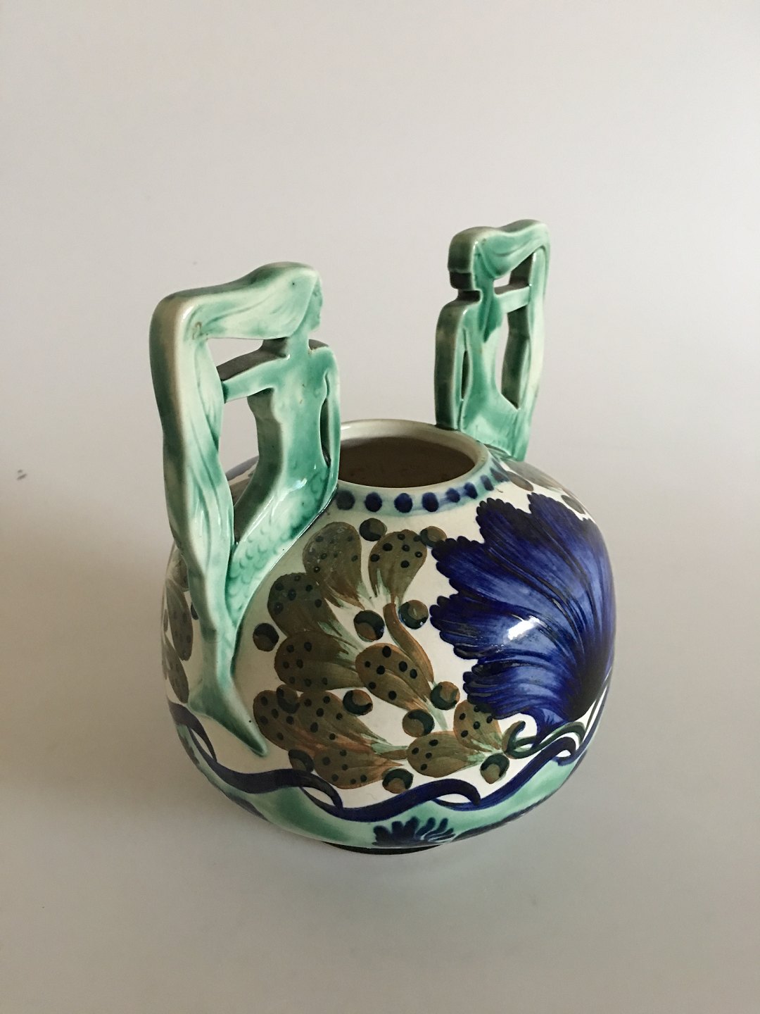 Aluminia Royal Copenhagen Mermaid Vase with Flowers and Fish No 414/331 19. I perfect condition and measures 18,5cm high.
