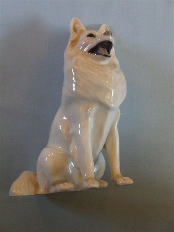 Royal Copenhagen Figur Spitz/Husky No 977. Måler 18cm x 16cm og er i god stand. Designet af A. Pedersen.