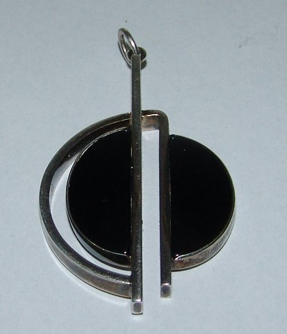 N.E. From Pendant in Sterling Silver with Black Stone. Measures 6,3cm, weighs 22,5g / 0,79oz and is in good condition.