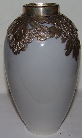 Royal Copenhagen Art Nouveau Vase med Anton Michelsen Sterling Sølv Montering fra 1914. Måler 18,5cm og er i god stand.