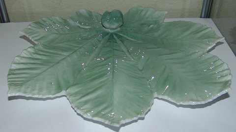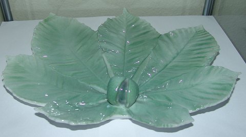 Royal Copenhagen Art Nouveau Kastanieblad No 11/4. Måler 29,5cm x 25,5cm og er i god stand, men har et par brændingsrevner fra fabrikken. Kan kun ses nedefra. Udført i en sjælden grøn glasur.