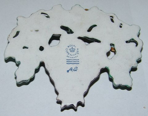 Royal Copenhagen Arje Griegst Pendent in Overglaze and gold No 5070. Measures 9cm x 8cm, weighs 56,7g / 1,99oz and is in good condition.