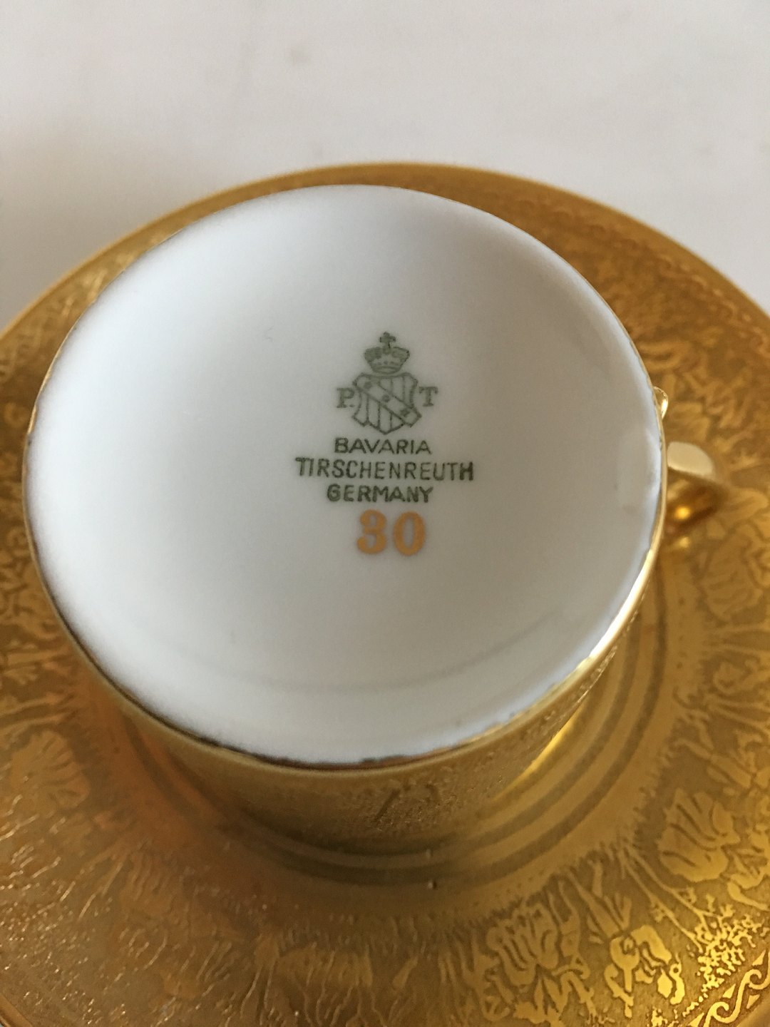 Tirschenreuth Porcelæns Kop i Guld. Måler 5cm i dia og er i perfekt stand.