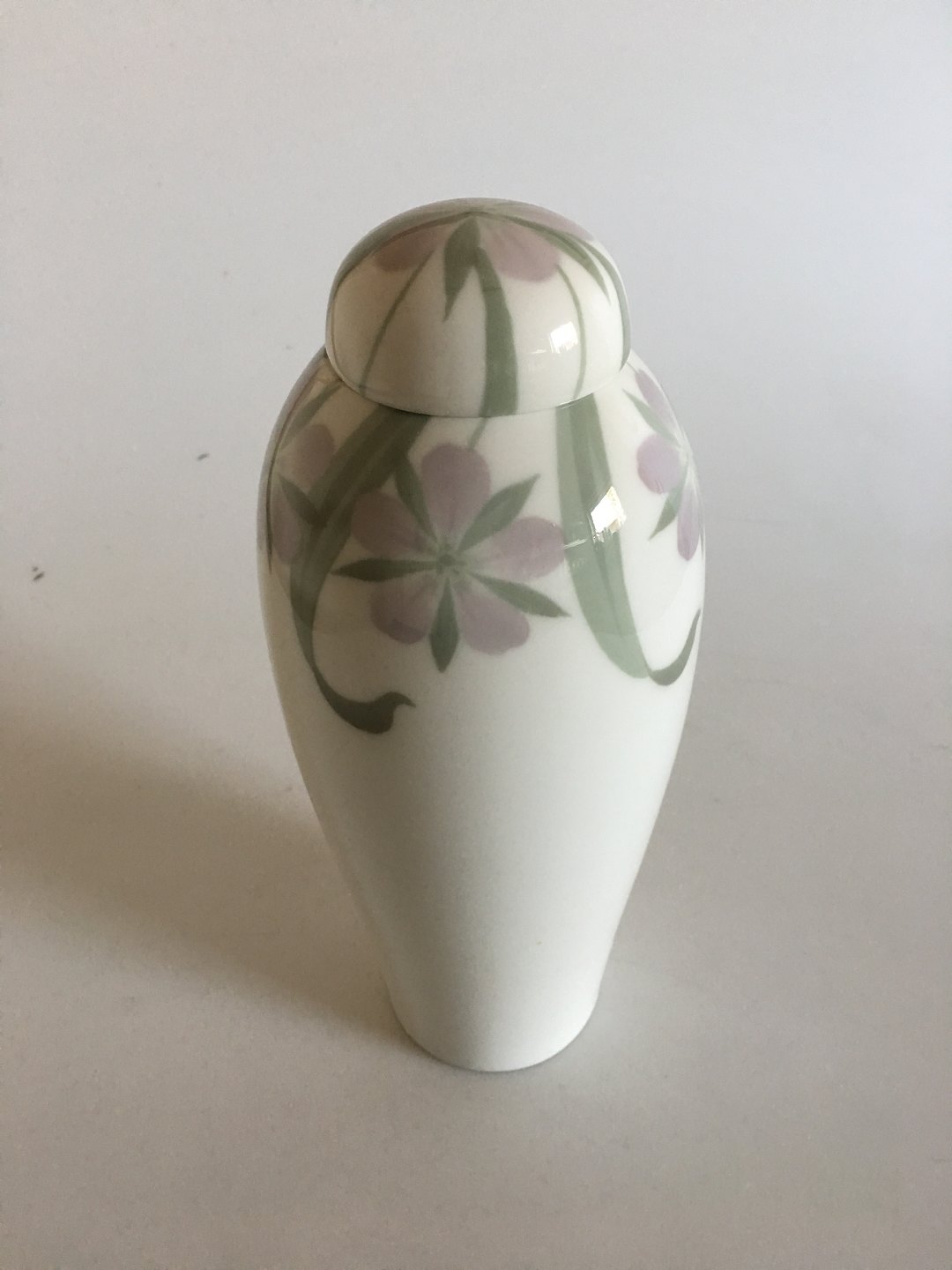 Rorstrand Art Nouveau Unique Lidded Vase by Karl Lindström. Measures 25cm and is in good condition. But the vase itself has been sanded down. But not sure weather it is done at the factory or not. But everything fits, so think it was a factory work.