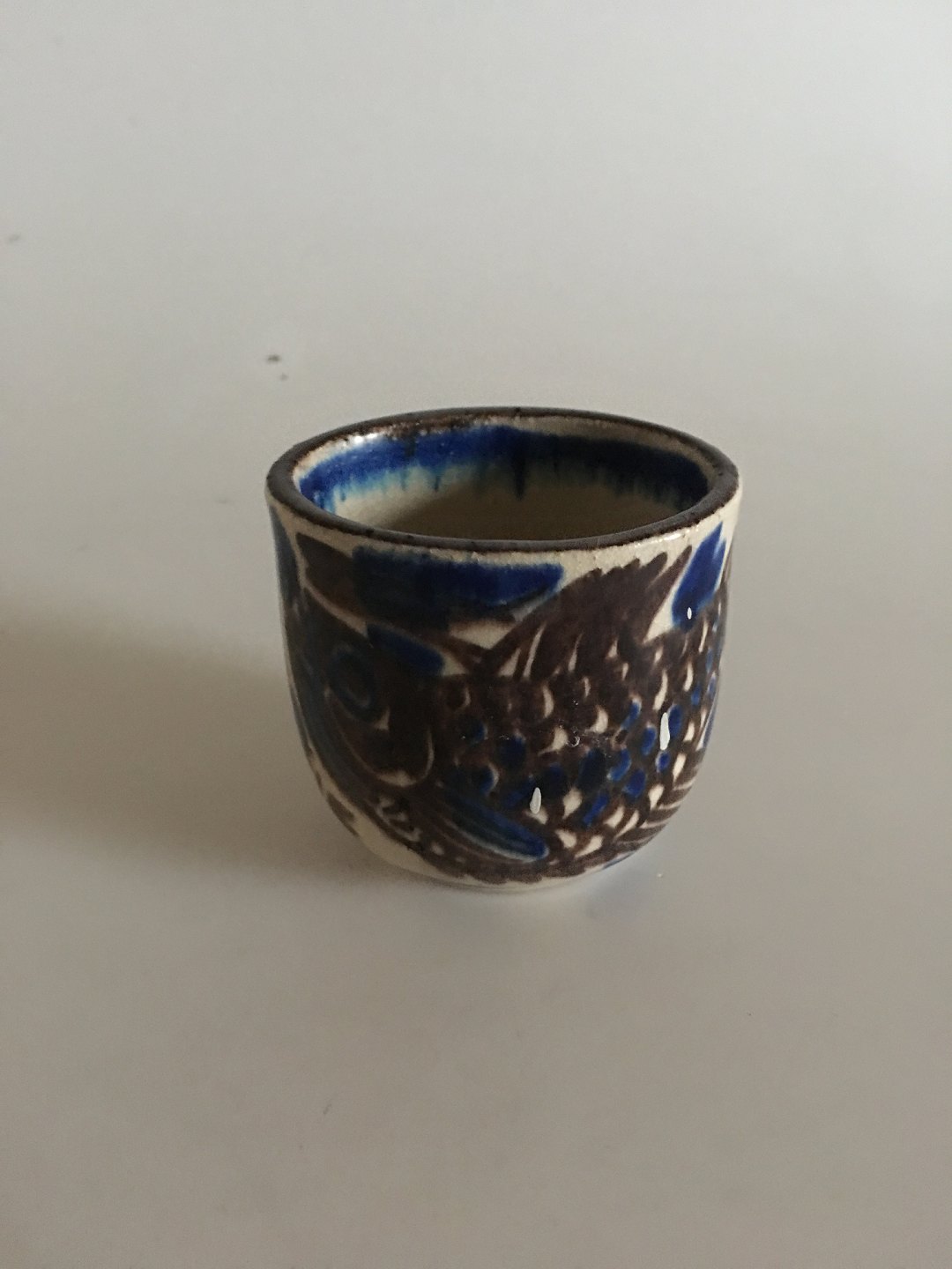 Royal Copenhagen Nils Thorsson Unika Stentøjsvase med fisk. Måler 7cm x 7,5cm og er i perfekt stand.