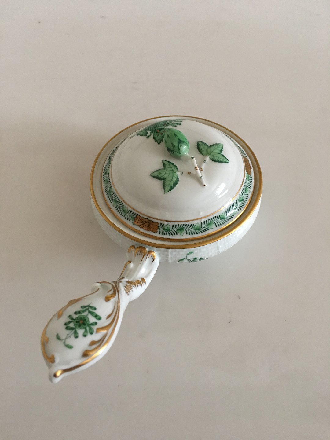 Herend Ungarsk Chinese Bouquet Apponyi Grøn Kasserole Skål med låg. Måler 19,5cm og er i god stand.