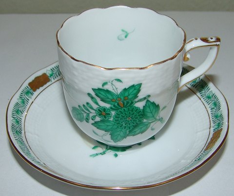 Herend Ungarsk Chinese Bouquet Grøn Kaffekop og underkop. Måler koppen måler 6cm dia og underkop 11,7cm. Vi har flere på lager.
