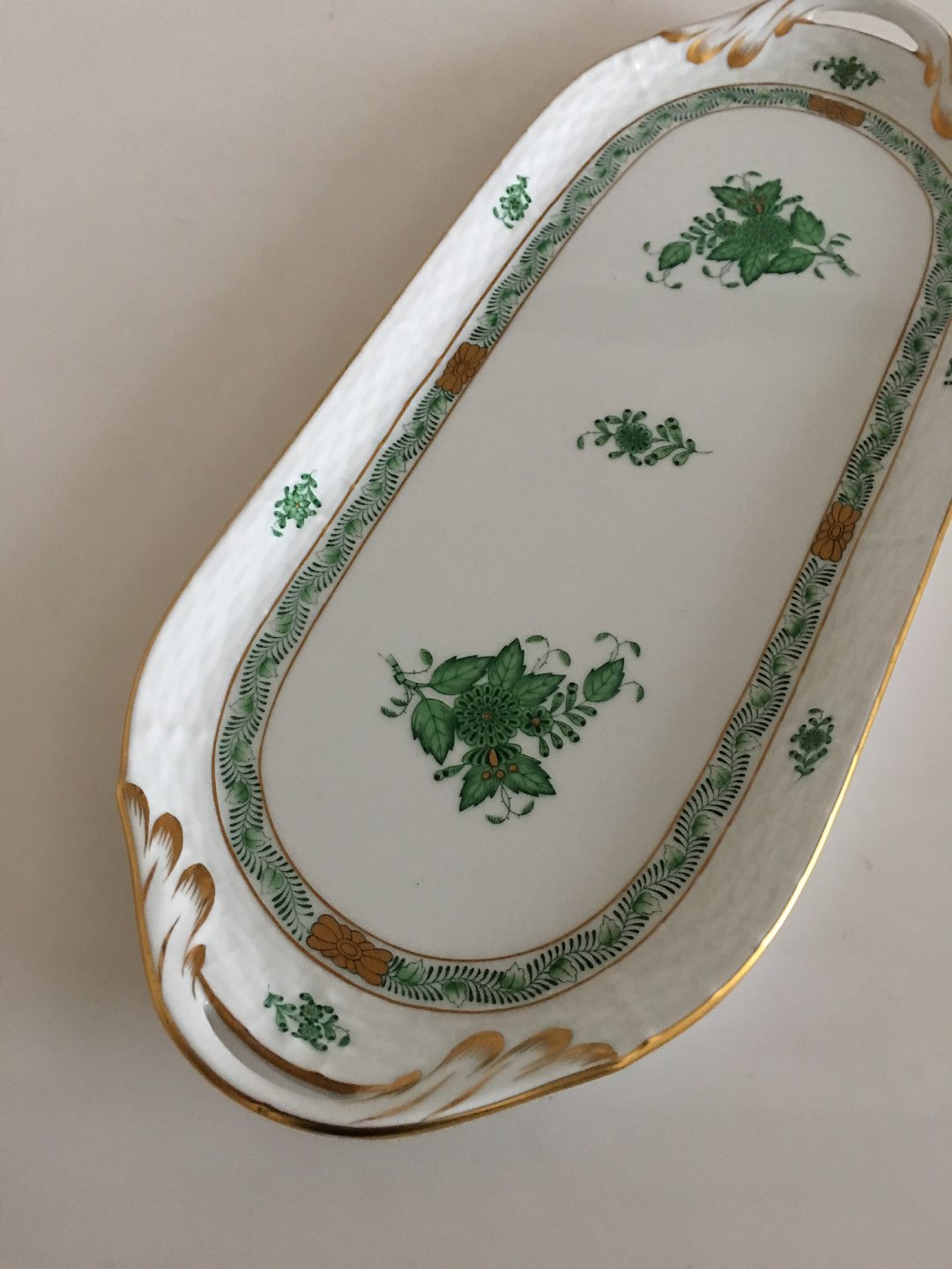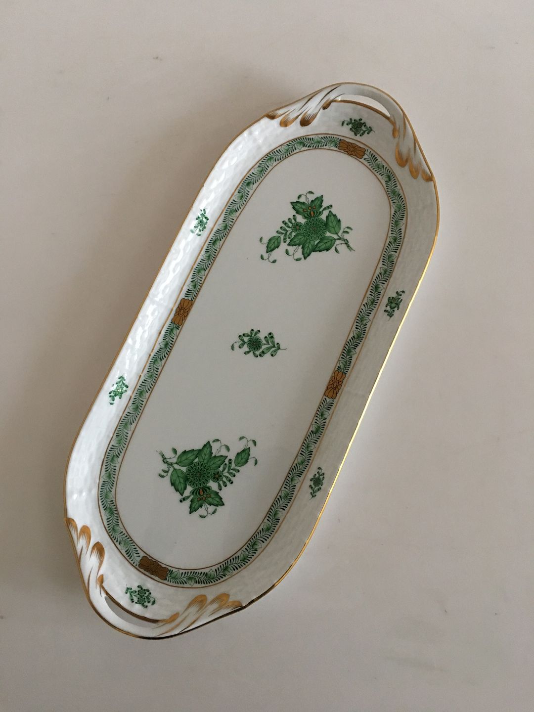 Herend Ungarsk Chinese bouquet Grøn Serveringsfad. Måler 26cm x 15cm og er i perfekt stand.