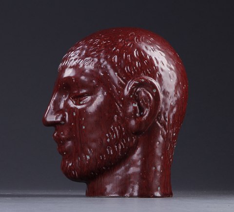 Royal Copenhagen Jais Nielsen Stentøjshoved No 2905 i okseblodsglasur. Måler 23cm høj og er i perfekt stand.
