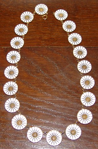 Anton Michelsen Margurite/Marguerite Necklace in gilded Sterling Silver and Enamel. Measures 1,8cm each in dia and the length is 41cm of the necklace.