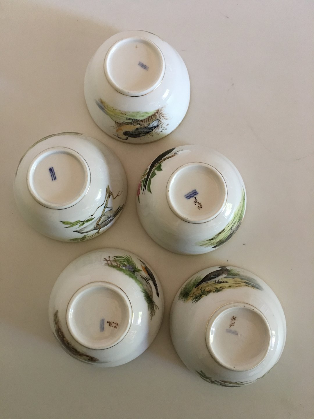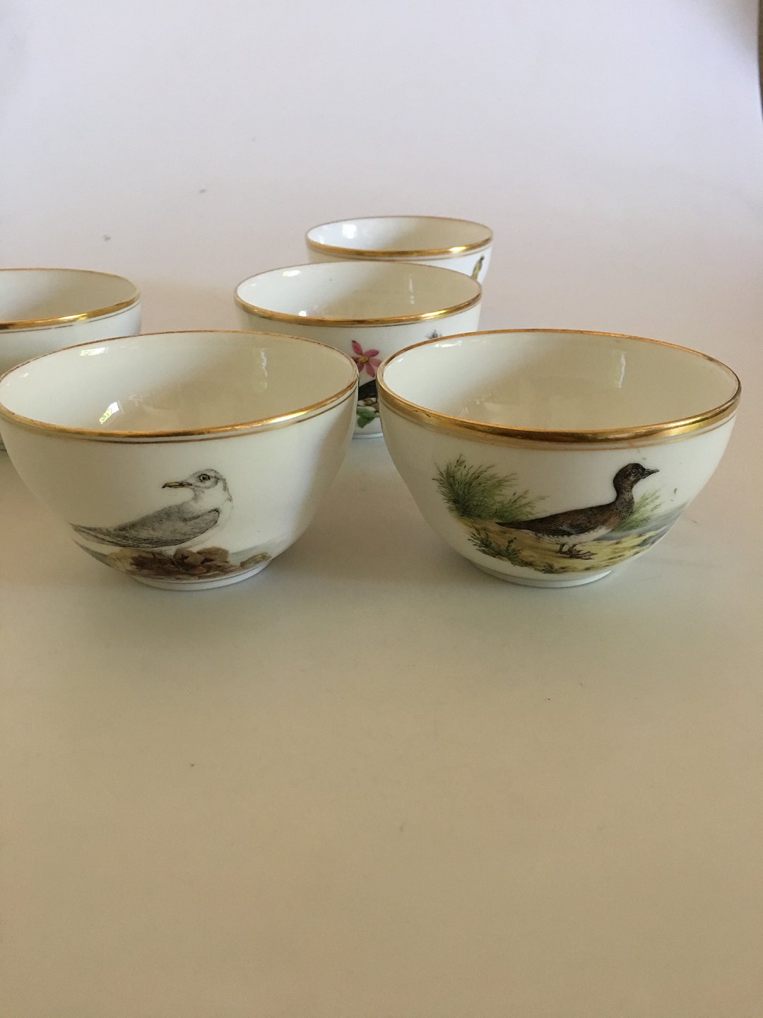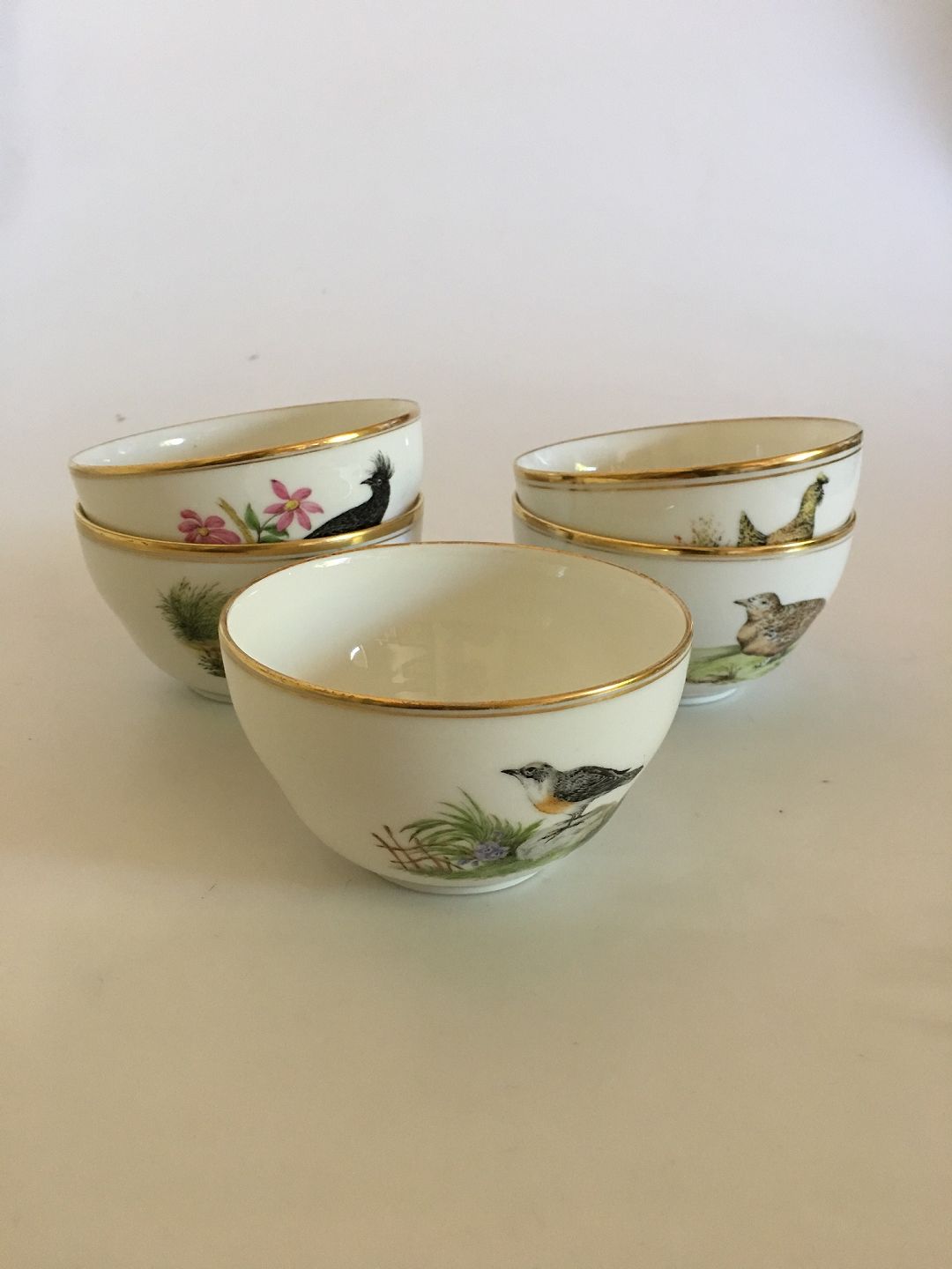 Royal Copenhagen Finger bowls with bird motif from 1870-1880. Measures 11,8cm x 6,3cm and is in good condition.