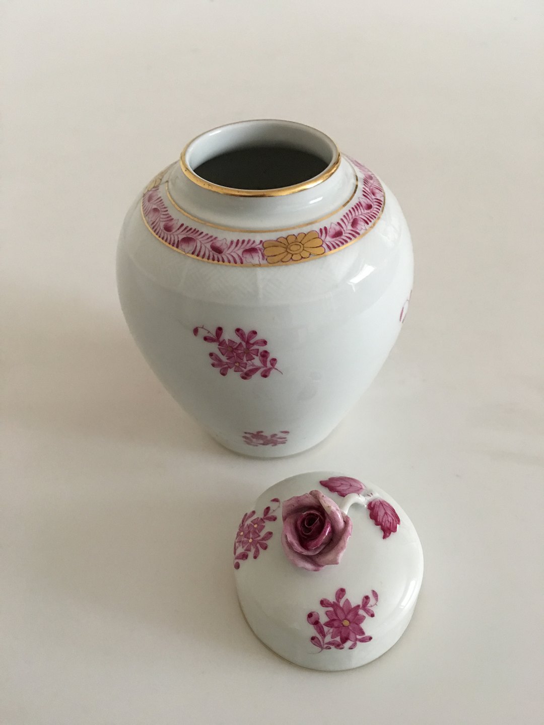 Herend Ungarsk Chinese Bouquet Purpur Lågvase. Måler 14,5cm og er i god stand.