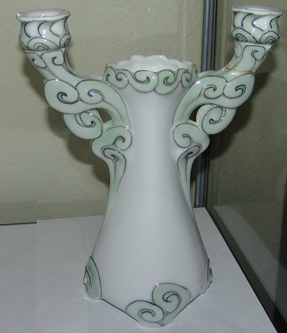 Royal Copenhagen Art Nouveau Vase og Lysestage No 408. Måler 28cm høj, har skade på ene arm og lyskransen er nedslebet.