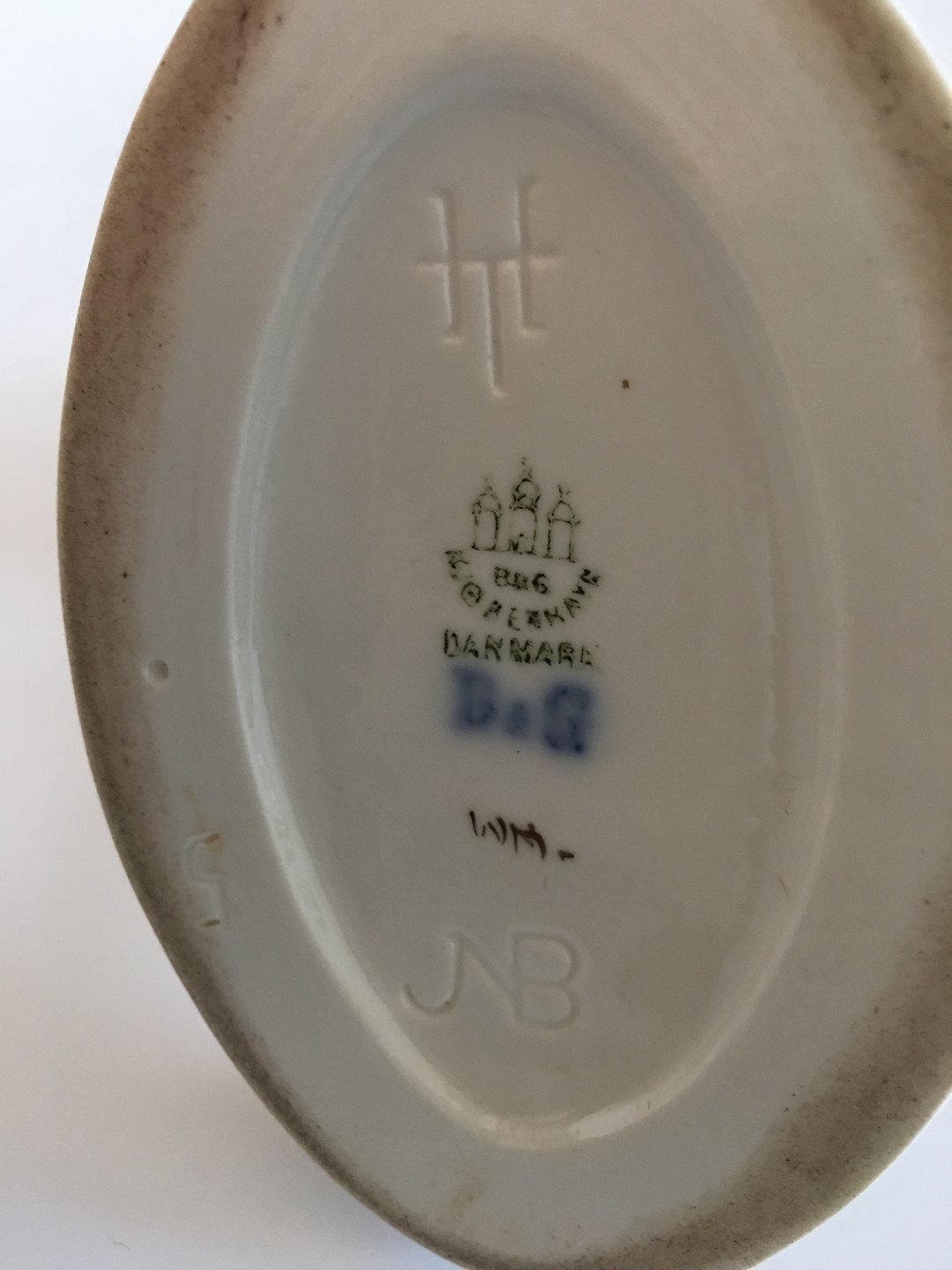 Bing & Grondahl Figurine Lackey without coat throwing a snowball by Hans Tegner and Jens Jacob Bregnų No 8026. Has a hairline on each leg.
