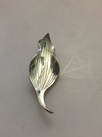 Anton Michelsen Bladformet Broche i Sterling Sølv designet af Gertrud Engel. Måler 6,5 cm x 2 cm. Vejer 8 g