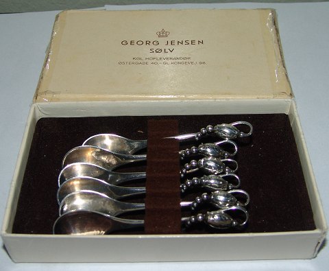 Georg Jensen Sterling Sølv Magnolia Mokkaskeer i boks. Måler 8,5cm og er i god stand. 6 stk.