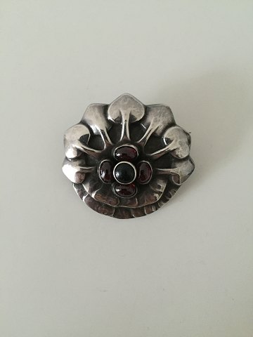 Georg Jensen Early Brooch with stones from 1904-1908. Measures 4,2cm (1 21/32") and is in good condition. But one stone with crack. Weighs 14g / 0,50oz.