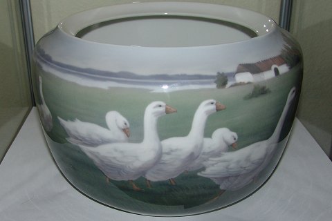 Bing & Grøndahl Art Nouveau Urtepotteskjuler med Gæs af Emma Krogsbøll No 6350/17B. Måler 17cm høj og 27cm bred. I perfekt stand.