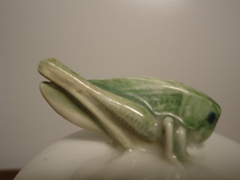 Royal Copenhagen Art Nouveau Vase with lid Grasshopper No 254/254. In good condition.