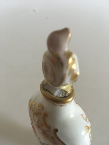 Royal Copenhagen Saksisk Blomst Flakon med låg ca. 1860. Måler 10 cm. Låg med afslag og reparation.