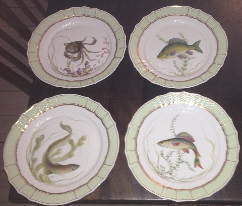 Royal Copenhagen Grønne Fisketallerken No 919/1710. Måler 25cm og er i god stand. Vi har 14 på lager, se billeder. De er alle tidlige. Samme motiv og maler som til Flora Danica Fisketallerkenerne