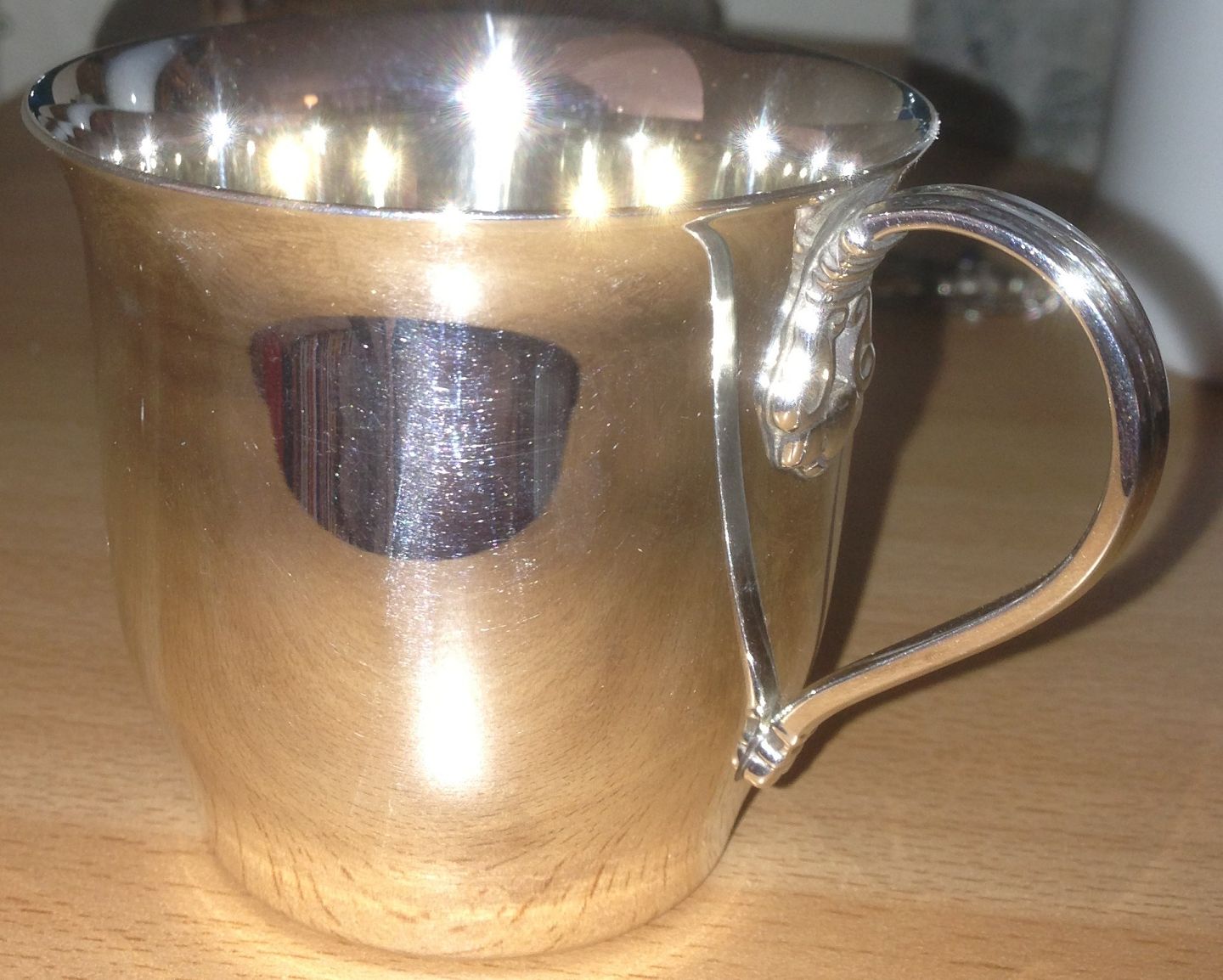 Georg Jensen Sterling Sølv Konge Barnekop No 1352. Måler 6cm høj og fylde mål er 5oz. I perfekt stand.