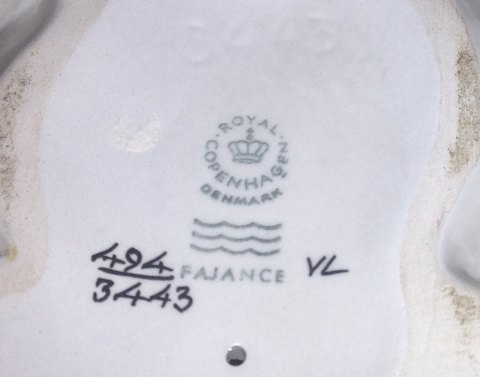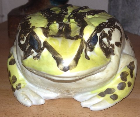 Royal Copenhagen Fajance Figur Skrubtudse No. 494/3443. Designet af Jeanne Grut. Måler 16 cm lang og 5 cm høj og er i perfekt stand.