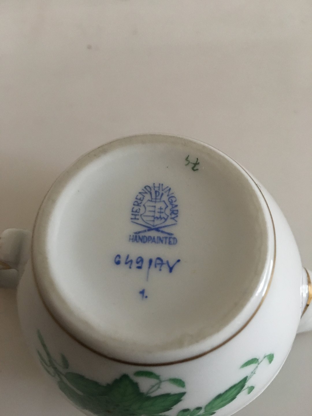 Herend Ungarsk Chinese Bouquet Grøn Flødekande. Måler 10,7cm fra tud til hank. I god stand.