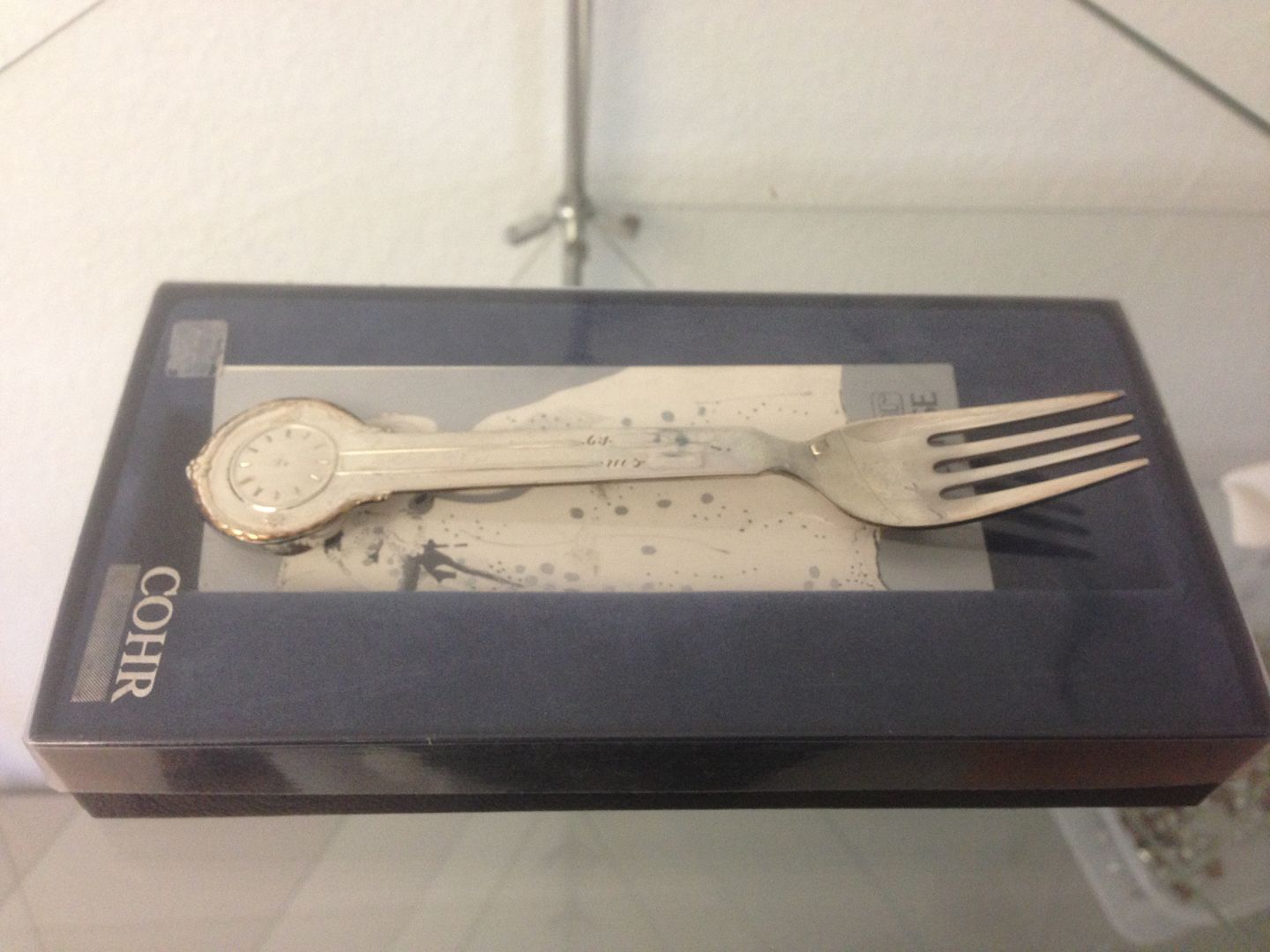 Cohr Barne/døbsgaffel i Sølv original æske. Måler 15cm og er i god stand.