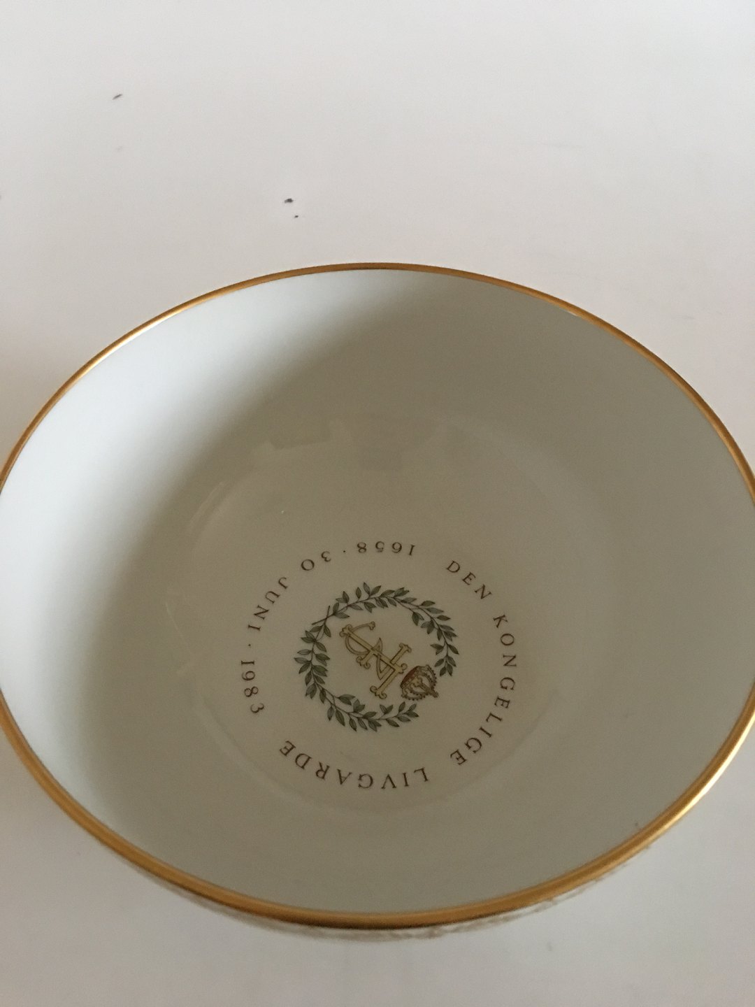 Royal Copenhagen Den Kongelige Livegarde Skål 325 års Jubilæum. Måler 24cm dia og 11cm høj. I perfekt stand.