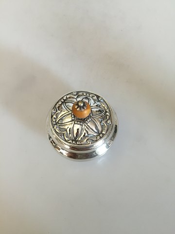 Kay Bojesen Silver Lidded box with Amber. Measures, 6cm high and 6,5cm dia. In good condition.