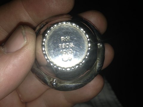 Frederik Kastor Hansen Lille Bøger af Sølv fra 1919. Måler 5,7cm dia og 3,3cm høj.