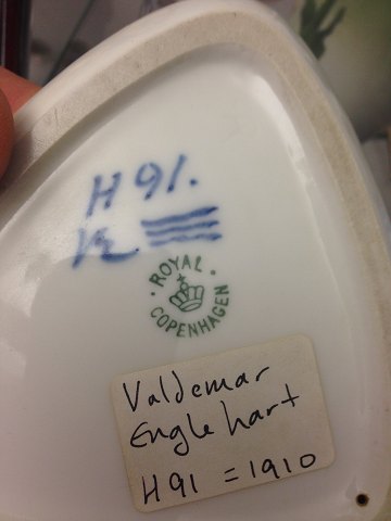 Royal Copenhagen Art Nouveau Skål med Mus og hvid krystal glasur af Valdemar Engelhart. Måler 12cm. Muse øre har reparation.