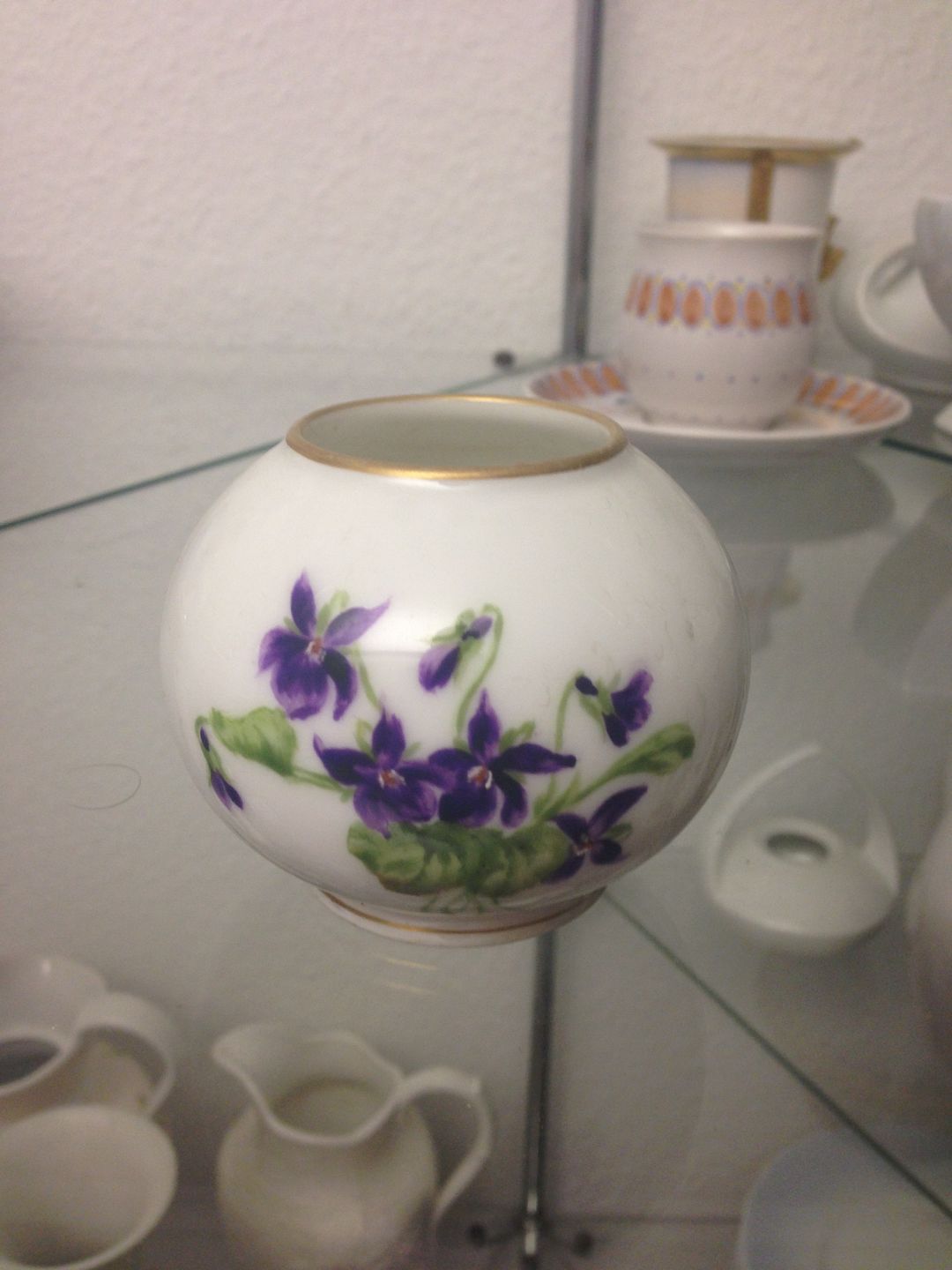 Royal Copenhagen Art Nouveau overglasur vase med Blomster. Måler 6cm høj og er i god stand.