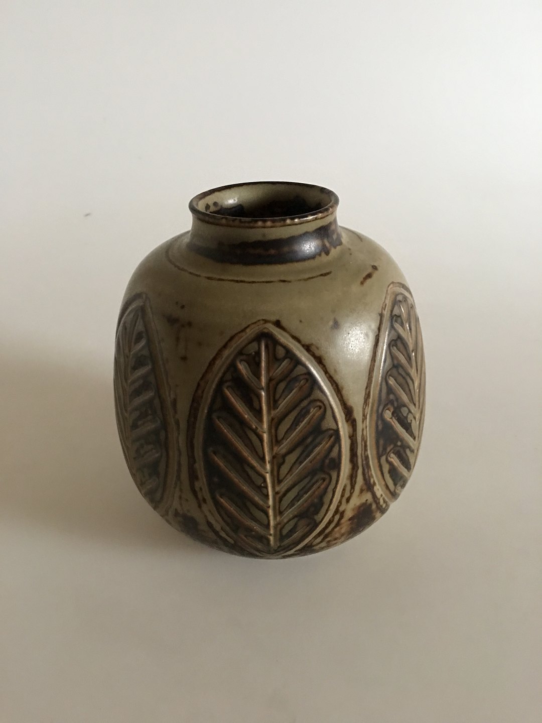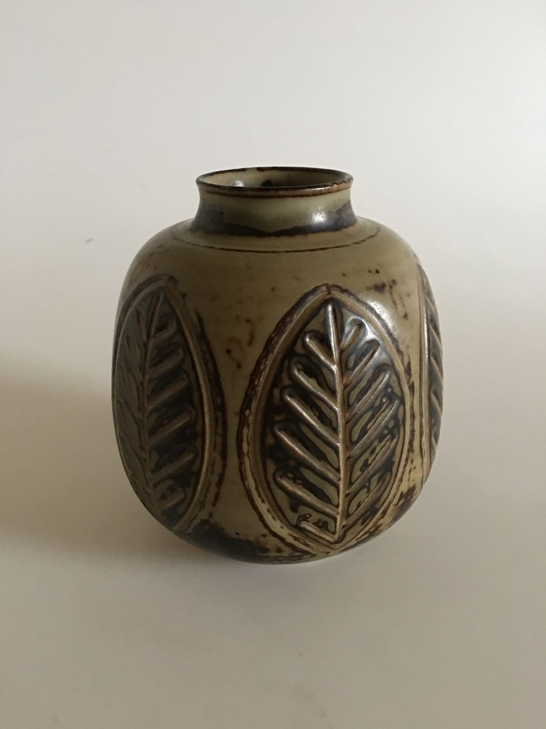 Royal Copenhagen Stoneware Vase by Gerd Bøgelund No 21741. Measures 13,7cm and is in good condition.