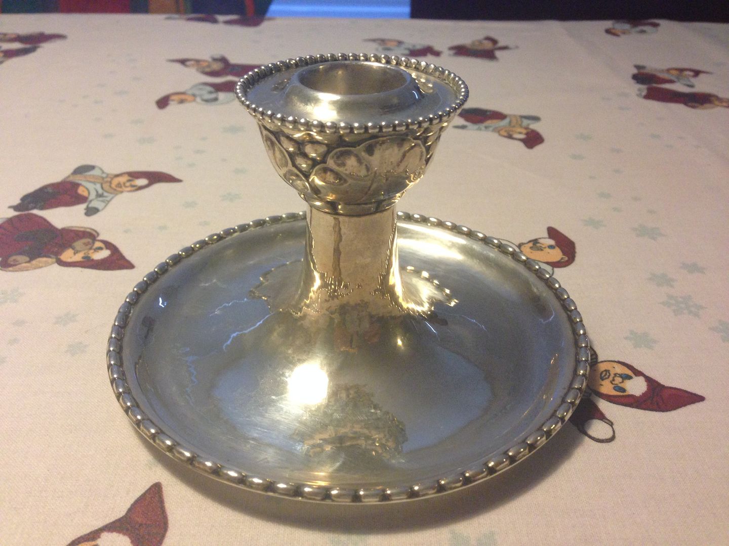 Georg Jensen Sølv Kammerstage fra 1915-1919. Måler 8cm høj og 13,5cm i dia.