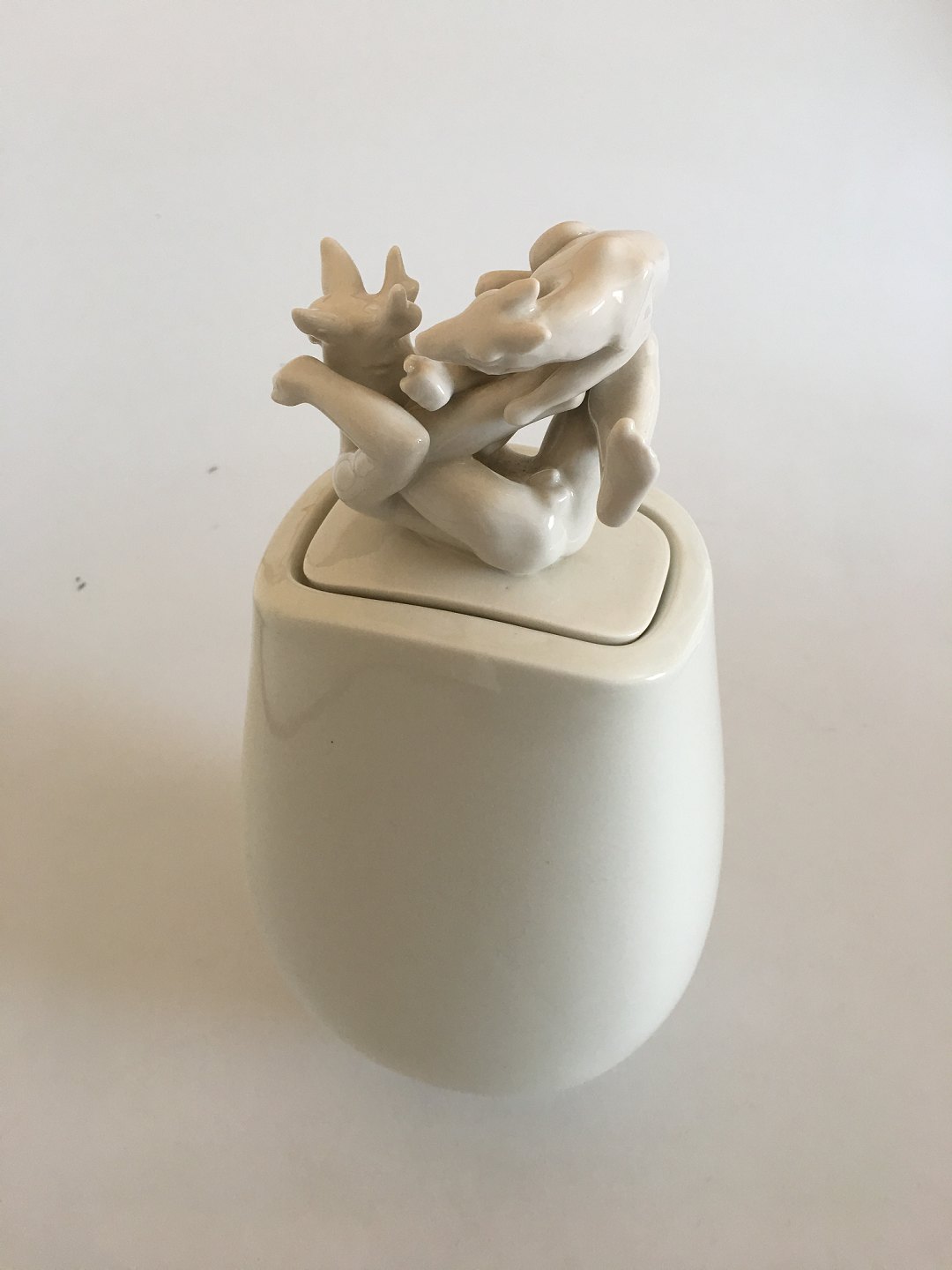 Royal Copenhagen Blanc de Chine Vase med Fan og hund af Johannes Hedegaard No 4362. Måler 34,5cm og er i god stand.