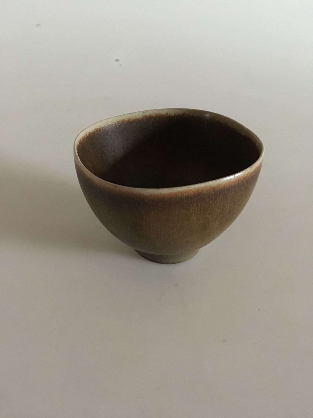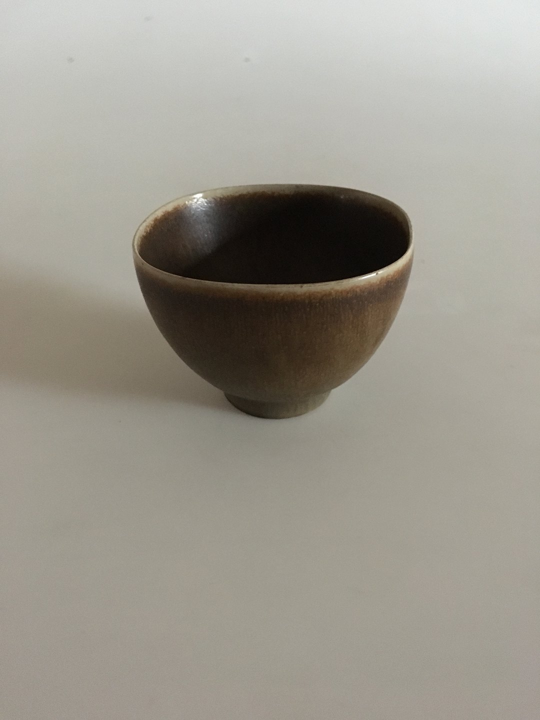 Saxbo skål i harepels glasur M38. Måler 8,3cm x 6cm og er i god stand.