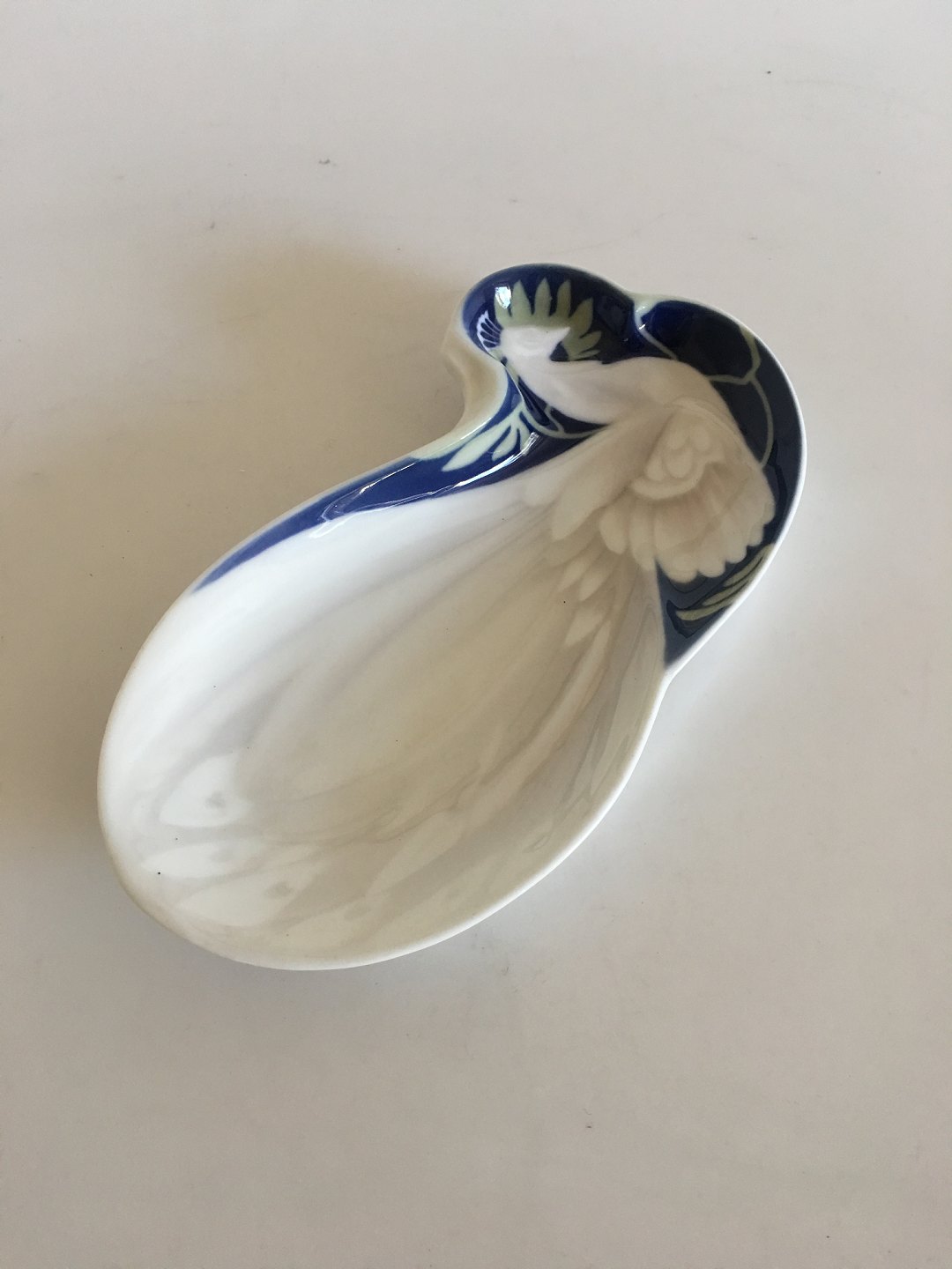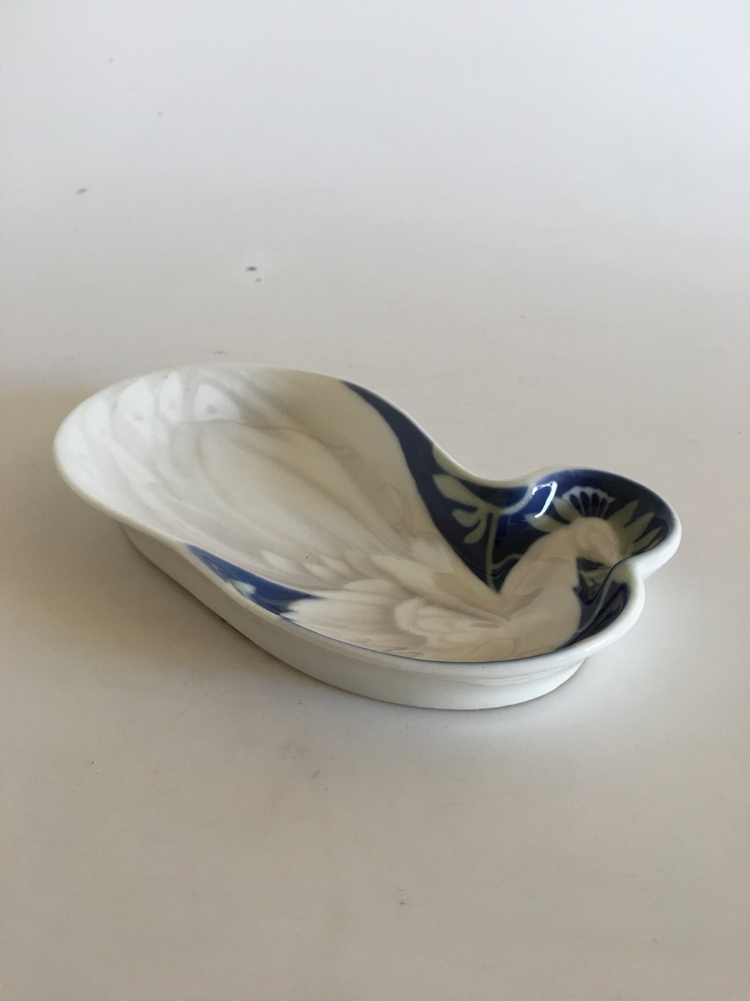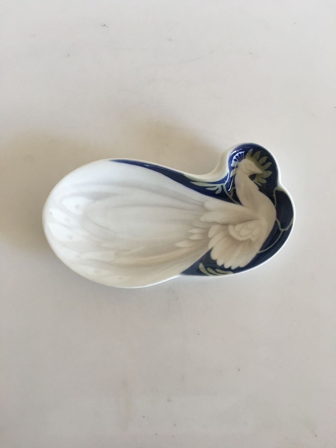 Bing & Grøndahl Art Nouveau Påfugl skål af Ingeborg Skrydstrup No 1031. Måler 21cm x 11cm og er i perfekt stand.